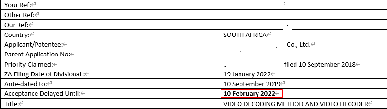 以下通過(guò)南非專利申請(qǐng)的案例來(lái)進(jìn)一步解釋上述期限要求。