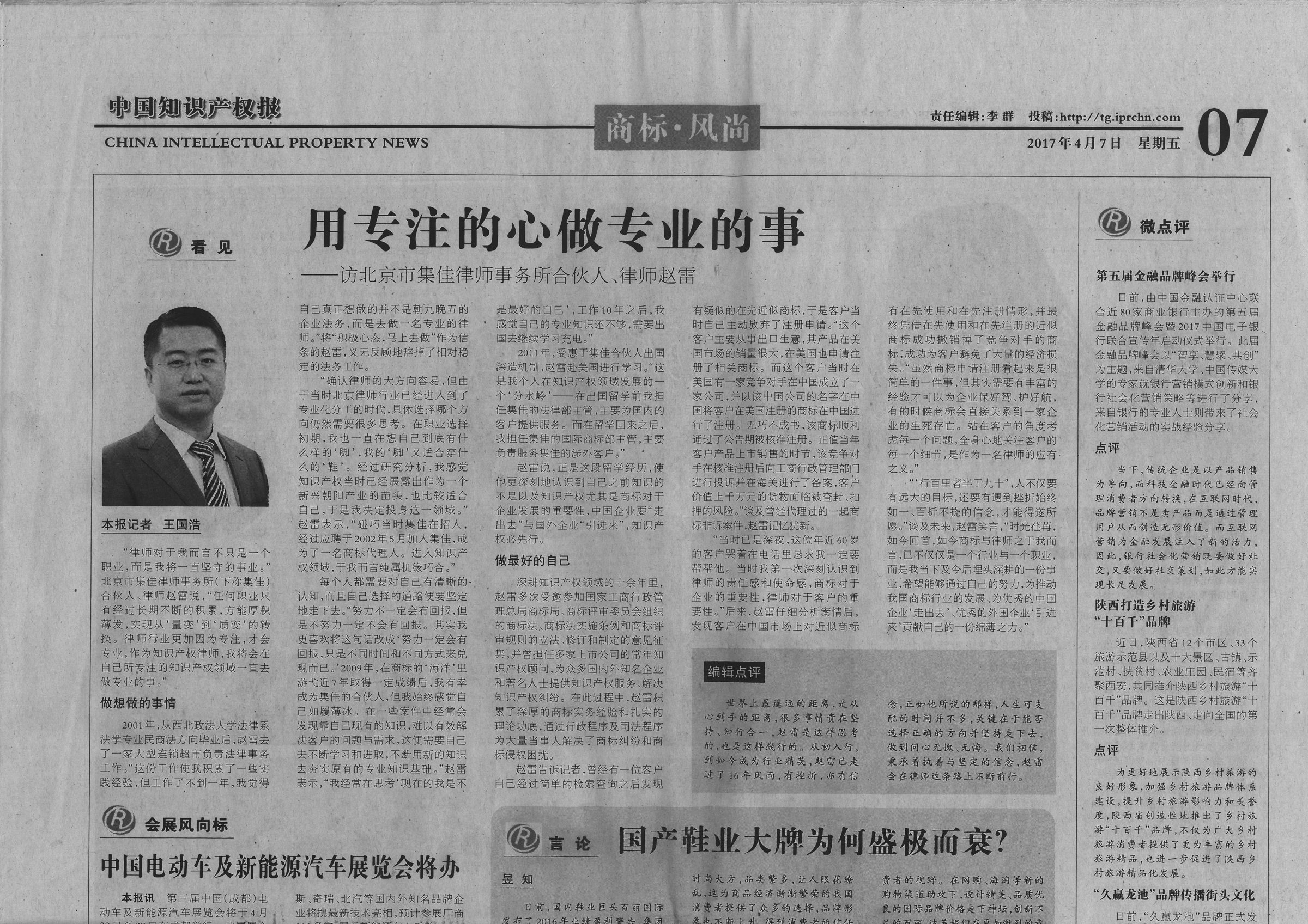 中國(guó)知識(shí)產(chǎn)權(quán)報(bào)專訪:趙雷