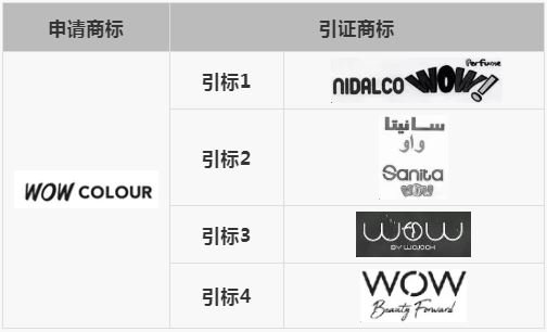 ”標(biāo)樣僅是重復(fù)了“WOW”,與原標(biāo)樣區(qū)別不大。最終,通過在“WOW COLOUR”的上方增加卡通圖形使三件申請商標(biāo)獲準(zhǔn)注冊。
